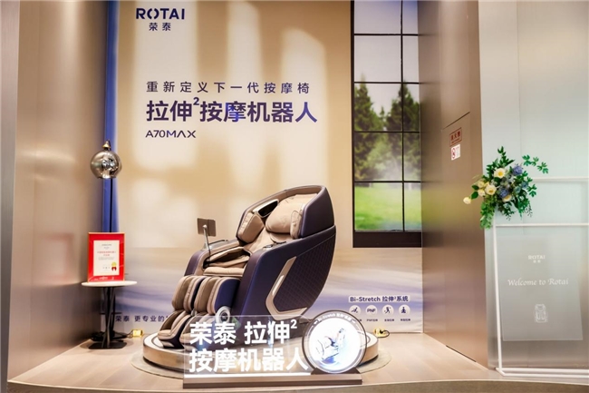 荣泰的创新基因,首先体现在 “以用户为核心” 的产品研发逻辑上。在虹桥总部体验区,探访团首个聚焦的拉伸²按摩机器人 A70 MAX,用“拉伸+按摩”双倍拉伸的专业化放松方案打破了对按摩椅的传统认知:用户落座瞬间,内置 AI 感知芯片便完成身高、肩宽、脊椎曲线的三维数据校准;Bi-Stretch 拉伸²系统通过单腿独立驱动,精准作用于髂腰肌、梨状肌等易劳损的深层肌群,配合上下双芯四手联控按摩,力度与轨迹模拟专业理疗师手法,甚至能根据用户细微的身体反馈调整节奏。“这不是功能的简单叠加,而是让产品‘学会观察身体’。” 荣泰品牌运营事业部总经理吴小刚的解读,点出了这款产品的创新内核。