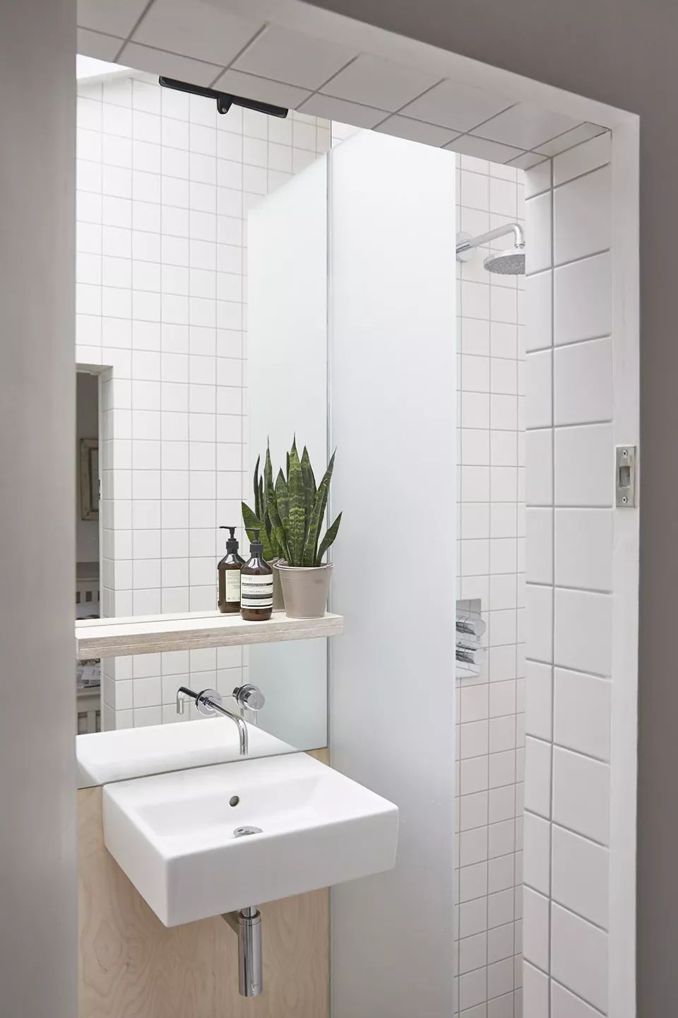 ▲ 一楼书房外的客卫,同样张贴小白砖营造明净清新的视觉。